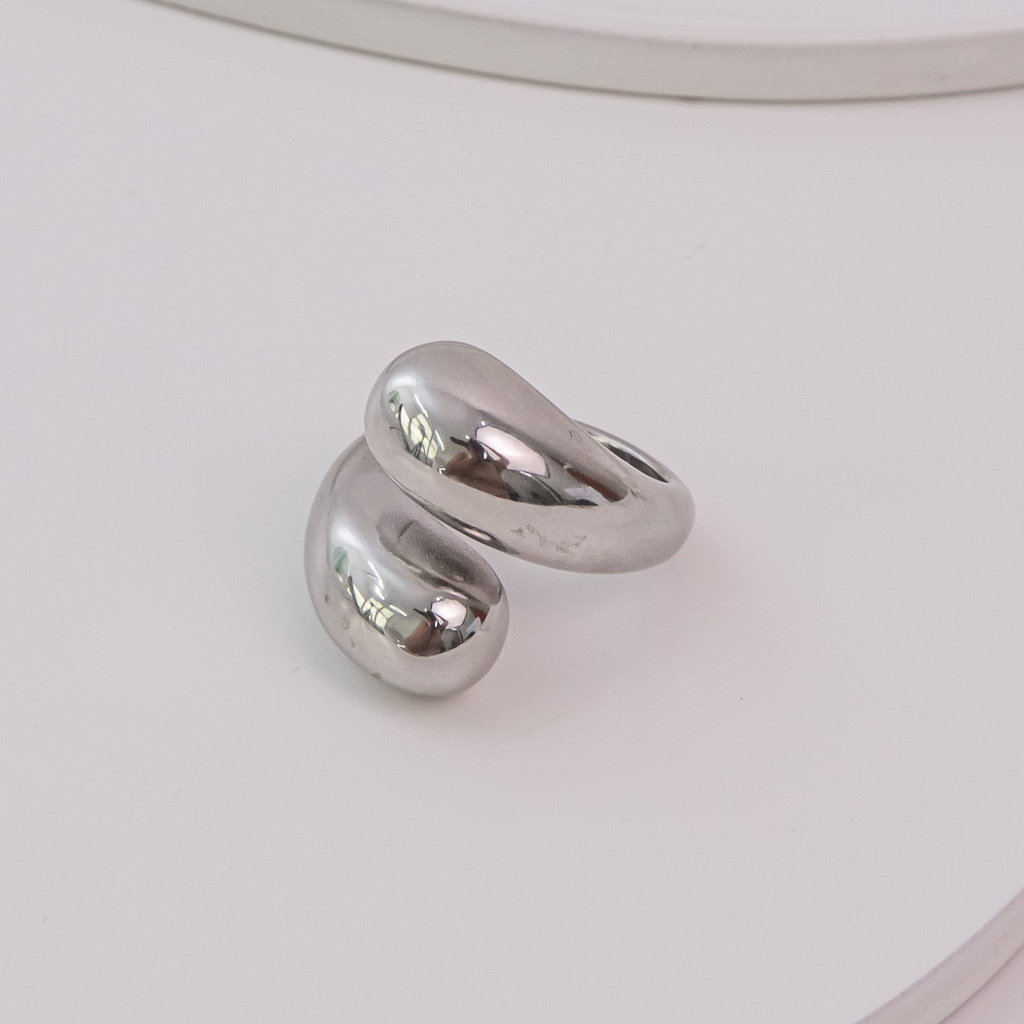 O Anel Gota Dupla em Aço Inoxidável apresenta um design moderno e sofisticado, com duas gotas abauladas que se encontram em perfeita harmonia. Resistente e cheio de estilo, é a escolha ideal para quem busca um acessório marcante e elegante para compor o visual.