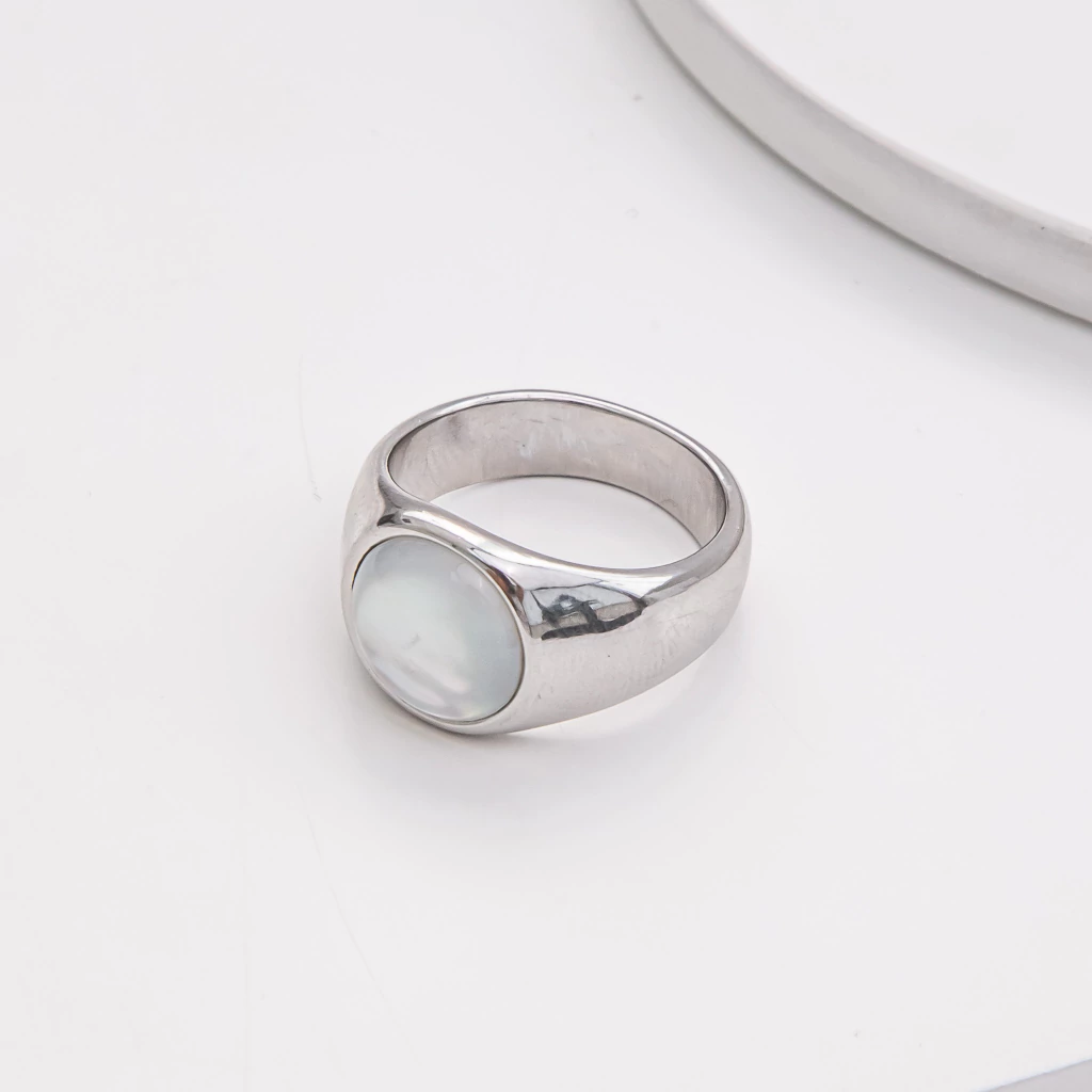 Modelo: Anel Círculo Madrepérola em Aço Inoxidável
