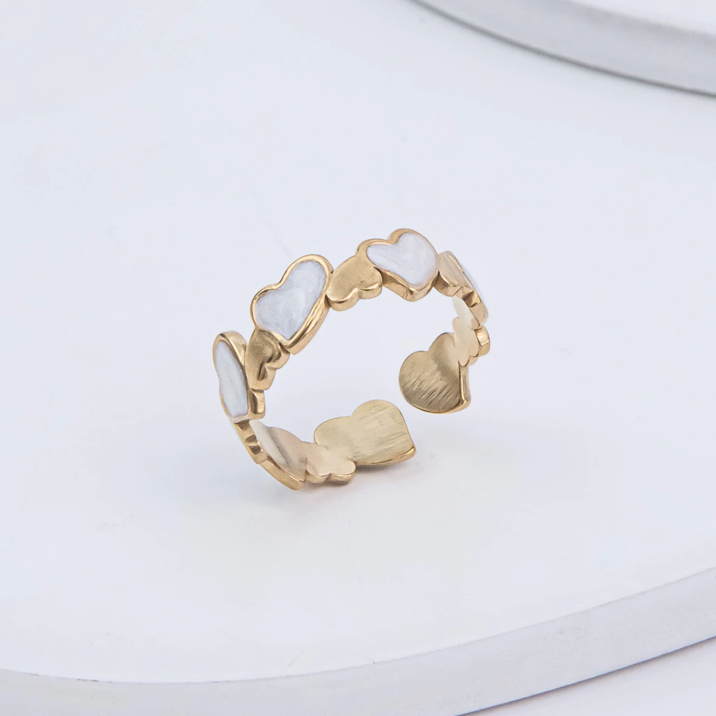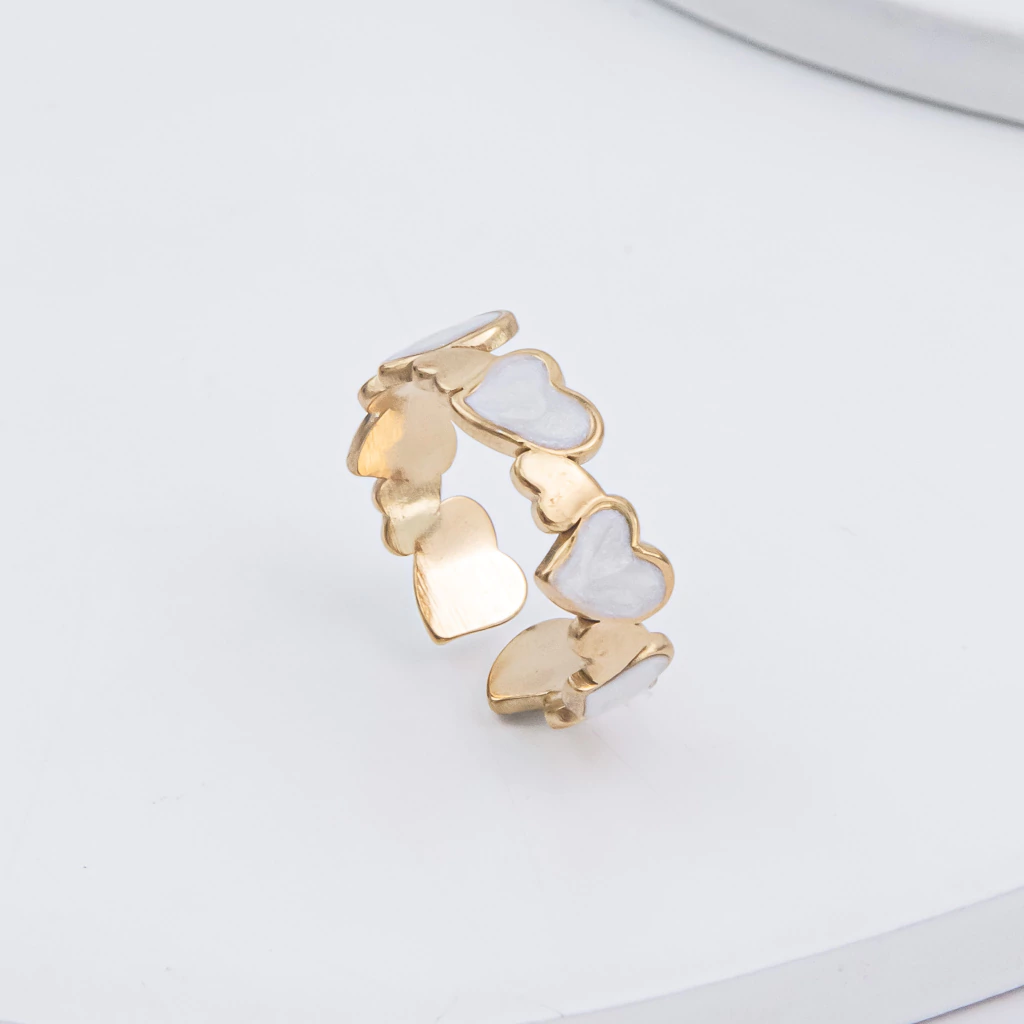 Modelo: Anel Dourado Regulável Multi Corações Madrepérola em Aço Inoxidável