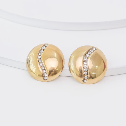Modelo: Brinco Dourado Circulo Cravejado em Aço Inoxidável