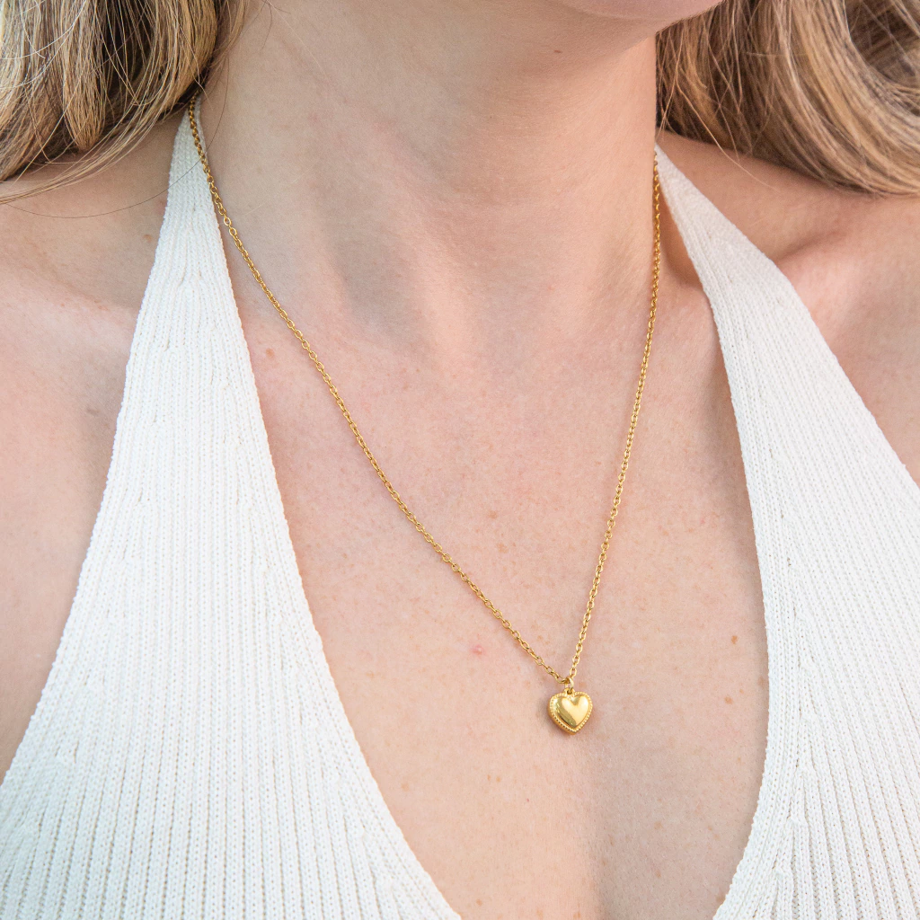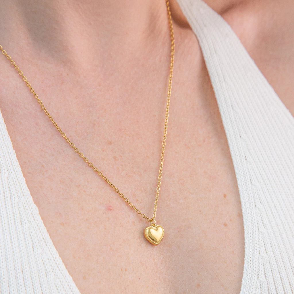 Delicado e cheio de romantismo, o Colar Dourado Coração Vintage em Aço Inoxidável traz o charme do design clássico com um toque moderno. O pingente em formato de coração com detalhes sutis valoriza o visual e transmite afeto e elegância.
