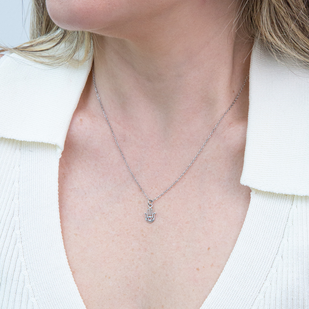 O Colar Hamsa Vazado em Aço Inoxidável traz o símbolo da mão de Hamsa, conhecido por representar proteção e boas energias. Seu design minimalista e delicado combina com qualquer estilo, sendo perfeito para o uso diário. Feito em aço inoxidável, é antialérgico, resistente à água e mantém o brilho por muito mais tempo, ideal para quem busca significado e elegância em uma só peça.