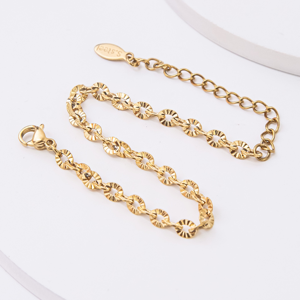 A Pulseira Dourada Texture em Aço Inoxidável é delicada e sofisticada, perfeita para realçar qualquer produção com elegância. Produzida em aço inoxidável, é resistente, durável e mantém o brilho por muito mais tempo.